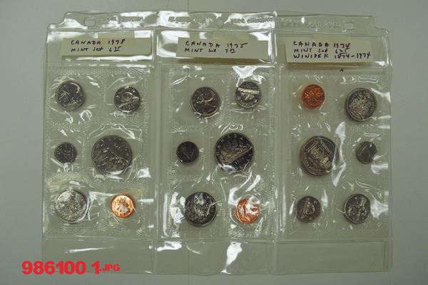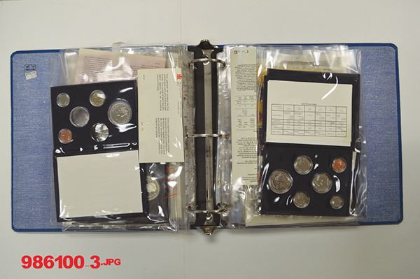 Canada. Mostly 6 piece Unc or PL sets, and two double (one silver in each) dollar Proof sets in damaged cases. 134 pieces.