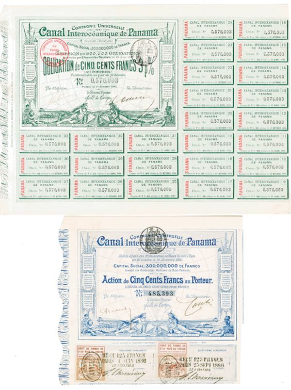 Panama. Pair of Issued Stock Certificates, 1 in green and the other in blue. Both are VF-XF condition.