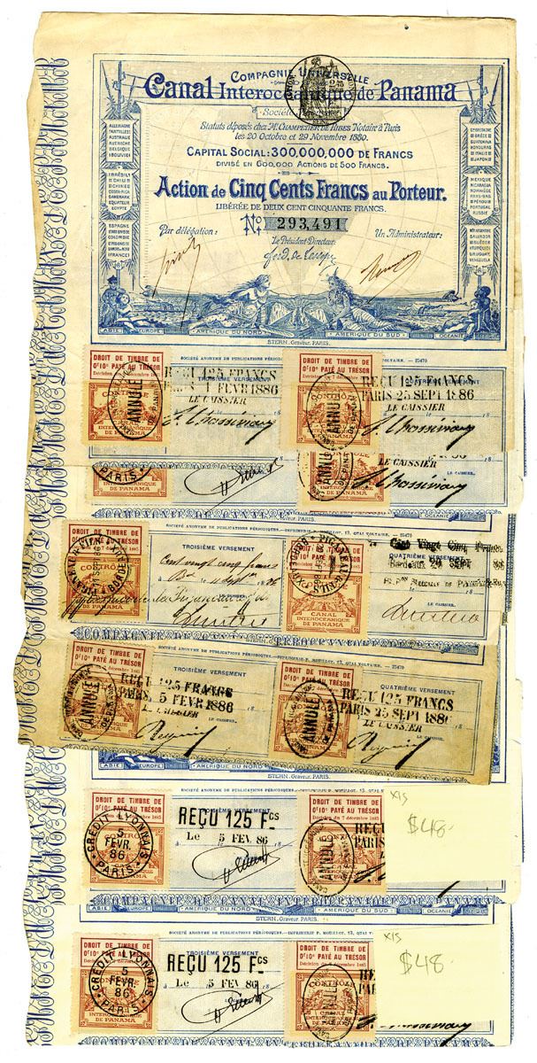 Panama and France, 1886. Lot of 6 I/U, 500 Franc Bonds, Blue print on blue border, Allegorical figures at bottom, Fine-VF condition, Stern. Graveur Paris. (6). Sold "AS IS" no returns accepted.