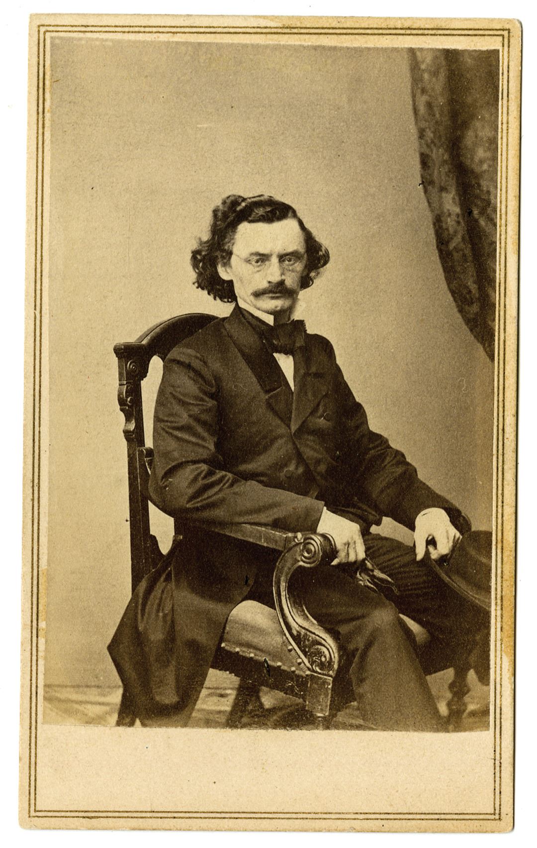New York, ND (1860-70s). Black and white photograph of Carl Schurz mounted on thick cardstock, 2.25 x 4 inches. Published by E. Anthony from a photographic negative in Brady's National Portrait Gallery. Carl Christian Schurz (March 2 1829 - May 14 1906) was a German revolutionary and an American statesman, journalist, and reformer. He immigrated to the United States after the German revolutions of 1848Ð49 and became a prominent member of the new Republican Party. After serving as a Union general in the American Civil War, he helped found the short-lived Liberal Republican Party and became a prominent advocate of civil service reform. Schurz represented Missouri in the United States Senate and was the 13th United States Secretary of the Interior. Fine-VF condition with some glue staining on front, writing in pencil on back. (From the Collection of John E. Herzog)