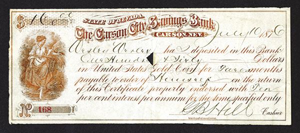 NV. Check signed by G.B. Hill. Endorsed on back, Cut cancelled. VF