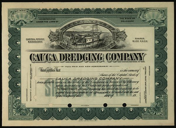 Delaware, 19xx, Specimen Stock, Odd Shares, Black on green border and underprint, Dredging ship top center, POC's, VF condition, SBNC.