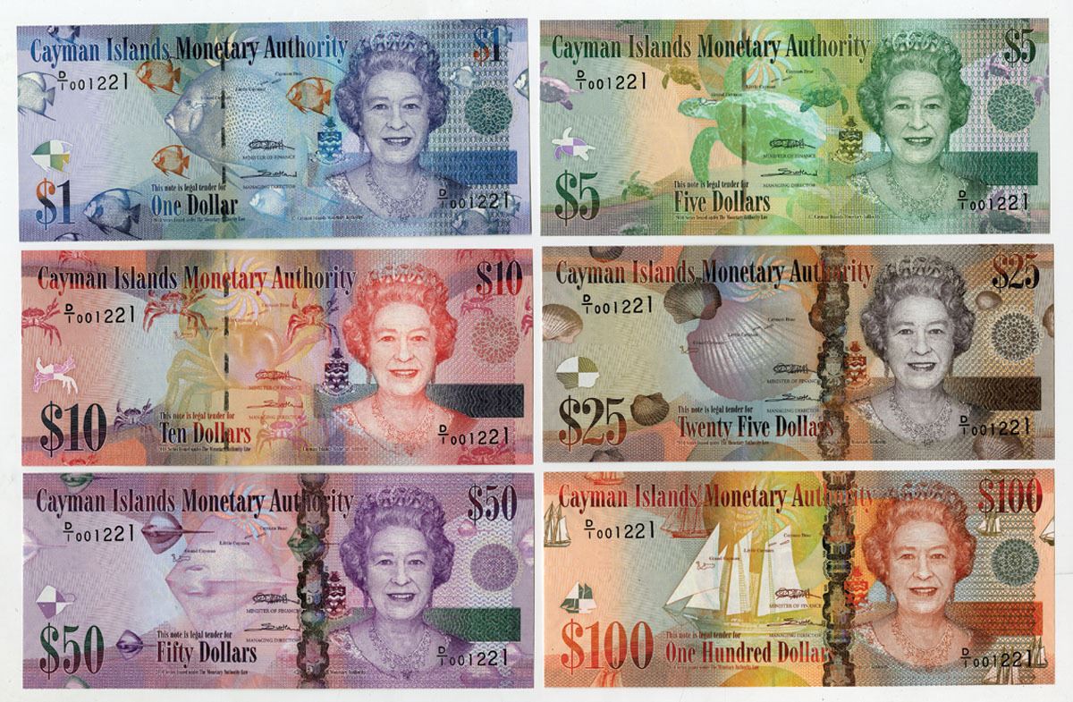 Cayman Islands, 2010. Lot of 6 Issued Banknotes, Includes: 1 Dollar, P-38a; 5 Dollars, P-39a; 10 Dollars, P-40a; 25 Dollars, P-41a; 50 Dollars, P-42a; and, 100 Dollars, P-43a. Notes all have same S/N: D/1 001221, are AU to Unc condition, and printed by DLR. (6). Sold "AS IS" no returns accepted.