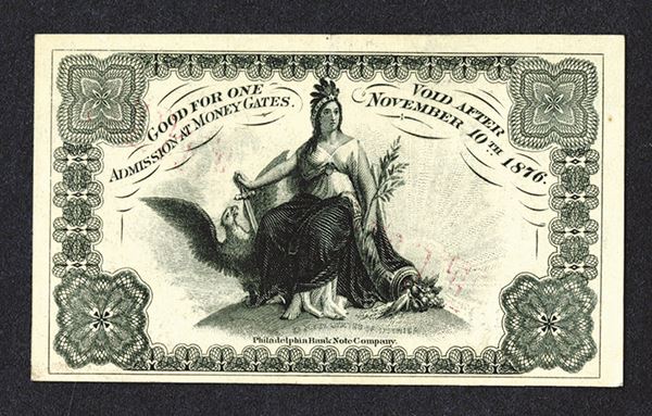 PA. Ticket for 1876 International Exposition, 50 Cents package ticket. Extremely Fine or better.
