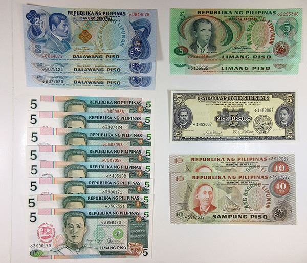 Philippines, Lot of 21 notes, includes P-135e, P-159-c, P-160, P-160-d, P-161(2), P-162a, P-163b, P-166, P-168a, P-168E, P-169, P-176a, P-177, P-177a(2), P-179, P-180, P-184a, P-187e, P-187f. Two are AU, and the rest are Uncirculated.