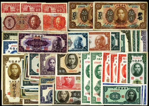 Lot of 46 Notes, Includes 1923 Issues (2); 1930's (10), 1CGU to 500 CGU; 1940 Issues (6), 10 Cents to 10 Yuan; 1941 Issues (5), 2 Yuan to 100 Yuan; 1945 Issues (4), 1 Yuan to 1000 Yuan; 1947, 5000 Yuan, P-310; Various Issues and dates (24), Interesting group that requires further research. Please examine, this lot is being sold “AS IS” with no returns accepted.