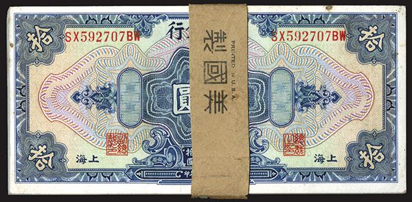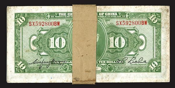 China, Lot of 93 notes, All are $10, P-197e, Original wrapper, overall AU to Uncirculated with possibly a few better. S/N SX592707BW to SX592799BW.