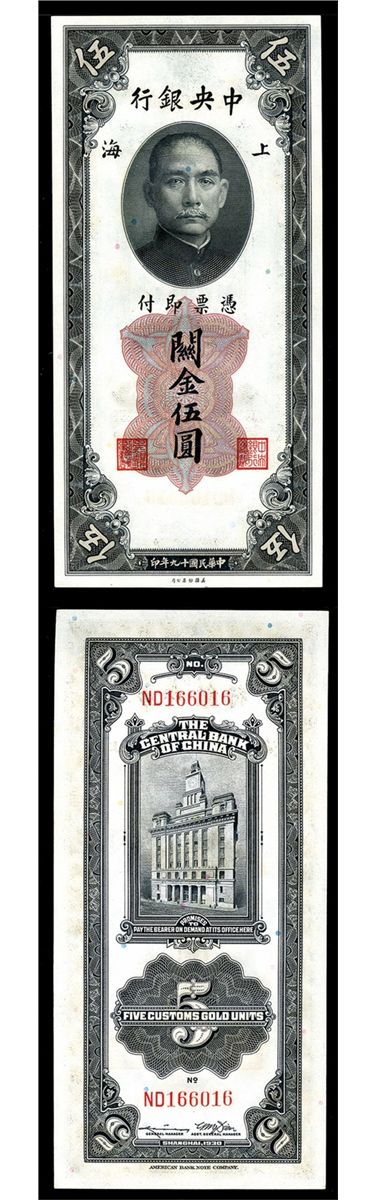 5 Gold Units, P-326d (S/M#C301-4), Issued banknote, Black on m/c underprint, SYS at top, back black, S/N ND166016, PMG graded Superb Gem Uncirculated 67 EPQ (Exceptional Paper Quality), The highest graded and finest known out of 36 notes graded in the PMG census. This is a unique opportunity to acquire a relatively common note in superb condition that will be impossible to improve upon.