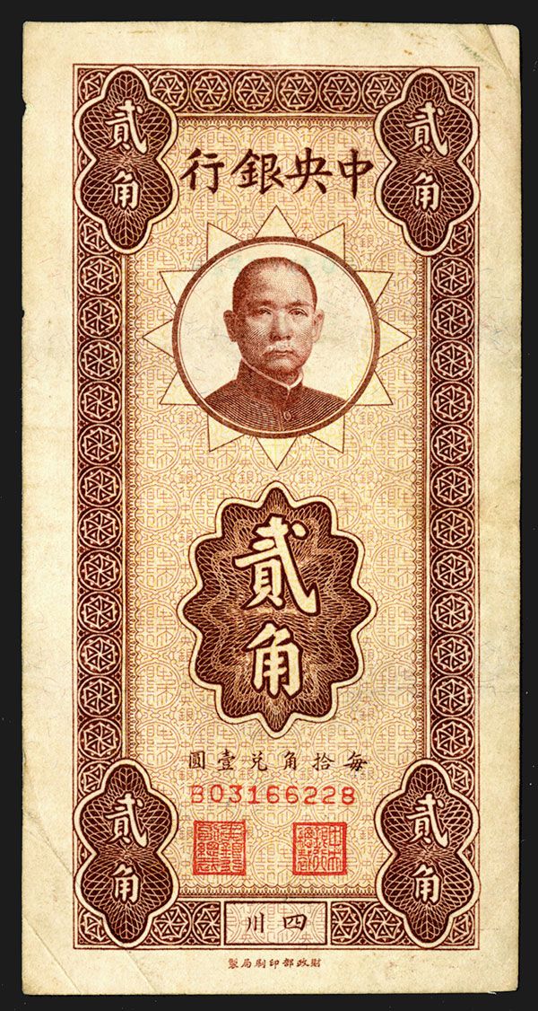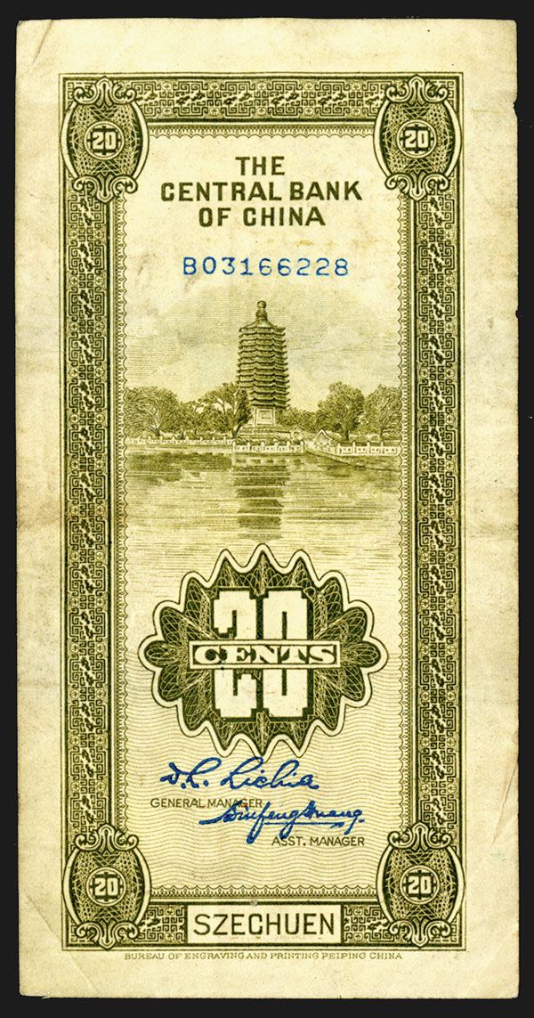 Szechuen, China. 20 Cents, P-205C, S/M#C300-70, Issued banknote, SYS at center top, PMG graded Choice Very Fine 35 NET with note of minor rust and previously mounted. Rare note in any form and the first time this variety has been offered by us. Only 2 notes, which includes this example, are listed in the PMG Census.