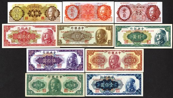 China. 1, 5, 10, 20 Cents; 10, 20, 50, 100, 1000, 2000, 5000 Yuan. P-224b; 225a (2); 226; 227a; 228 (2); 229b; 384; 385 (2 serial # varieties); 386; 395; 396; 397; 399; 400; 401; 402; 403; 406; 407. Mostly Choice Very Fine to Uncirculated.