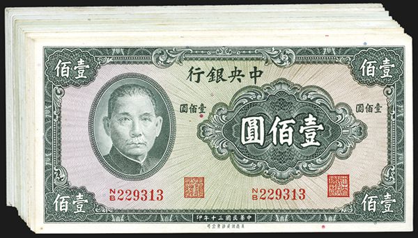 China. 100 Yuan. P-243a (18); P-243b (1, with punch hole cancel. Generally Very Fine.