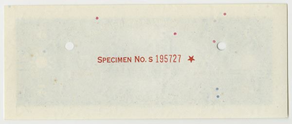 China... 1945 (1948), 5 Yuan, P-389s, Uniface back specimen, Blue on back with junk in center flanked by National Sunbursts, Specimen overprint and serial number on blank back, POC's. Rare note in any form. SBNC. Only available as a specimen or proof, no issued examples known.