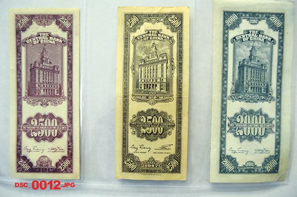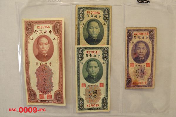 China, Lot of 140+ notes. Includes 125+ notes from Central Bank of China. Include 1930 to 1947 issues. Highlights include 1930 issues, 10 cents and 20 cents ABN issues plus numerous higher denominations from this series, some multiple and Unc.; also included are denominations from 500 CGU's to 10,000 CGU's, some duplication, VF to AU with some Unc. Attractive accumulation and a companion to the other binder. Nice assortment.
