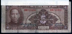 Lot of 3 banknotes, 2 are altered notes from lower denominations. Included is a 1928, $1, P-195 that has been raised to a $5 banknote with well done artwork. It is clipped to note that states "Memorandum From Office of the President?.Date September 23, 1938....Subject - Chinese Forgeries. The attached Raised Central Bank of China $1 note sent by H.G.J.McNeary with his letter of August 8th. Note No. SN 715906". Also included is a pair of Central Bank of China $1 notes, one normal and the second raised to $100, attached to a note "Example of "Raised" bill - from McN(eary), 1/19/46". Rare and interesting ABNC counterfeiting items from research department.