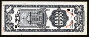 P-363 1948. 10,000 CGU's. Unlisted Uniface front and back specimen banknotes. Red specimen overprint, "00000" serial numbers and POC's. Top margin of front and back have "3-31-48 - B". Choice to Gem uncirculated condition. SBNC. Scarce specimen banknote.
