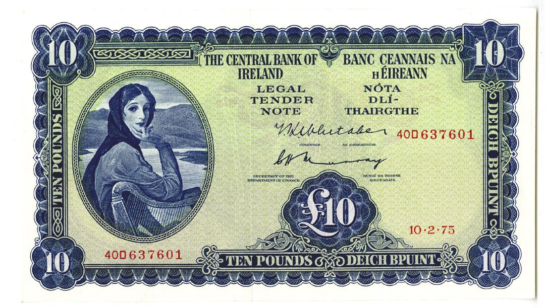 Ireland. 1975. 10 Pounds, P-66c, LTN62a-b, issued banknote, Lady Lavery at left, PMG graded Gem Uncirculated 66 EPQ. (From the Allen Berk Collection)
