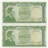 Jordan, ND. Lot of 2 Replacement notes, both are Second Issue - Law 1959, 1 Dinar, P-14c, Issued banknotes, King Hussein at left, Green on m/c, Back: Dome of the Rock at center, S/N's ZZ 099925 and ZZ 099918, both are in Uncirculated to Choice Uncirculated or better. Attractive and fresh notes from a new find. (2)