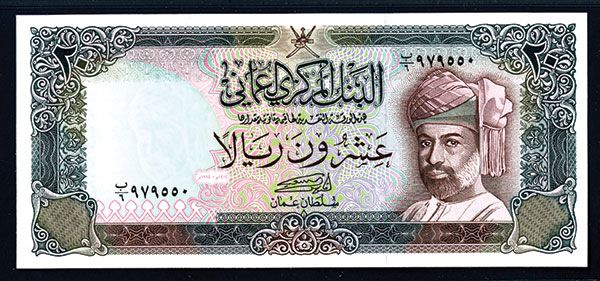 Oman, 20 Rials, P-29b, PMG graded Gem Uncirculated 66 EPQ (Exceptional Paper Quality), Attractive high grade note. Only 4 graded in PMG census, all at this grade with none higher.
