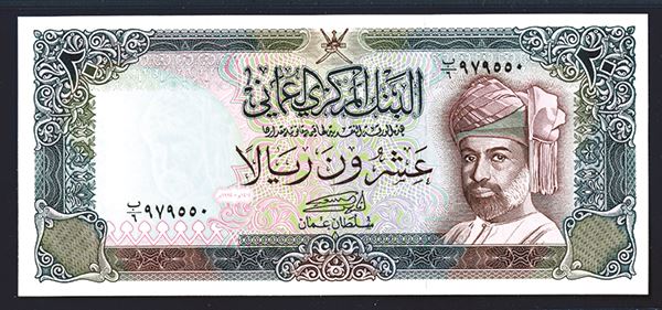 Oman, 20 Rials, P-29b, PMG graded Gem Uncirculated 66 EPQ (Exceptional Paper Quality), Attractive high grade note. Only 4 graded in PMG census, all at this grade with none higher.