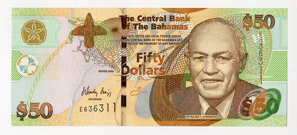 Bahamas. $50 P-75, Issued, multicolor, Sir Roland T. Symonette at right, Low S/N E 636311, Choice to Gem Uncirculated, Lovely note with strong embossing. (Arthur C. Matz Collection)