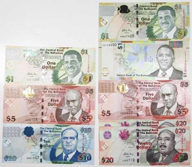 BahamasÉ Group of Issued notes Includes $1, 2008-2017, P-71 (1 with Low serial # A001466) P-71A (1), and P-77a (1), FC-O; $5, 2007-2013, P-72a (With Low serial # A00128) and P-72b, TDLR; $10, 2009, P-73A (Low Serial # G001557)(T)DLR; $20, 2006, P-74 (2), FC-O. Notes range from VF-Choice (8)(Sold "AS IS" No returns accepted)