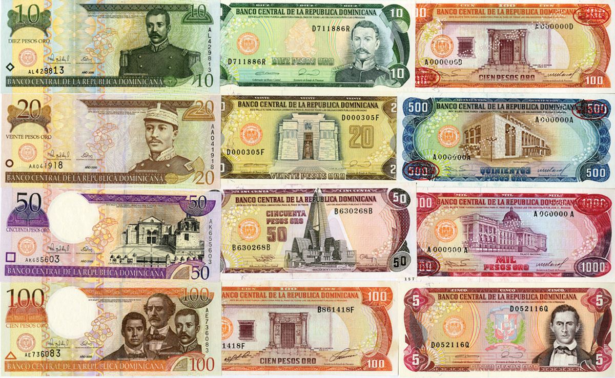 Dominican Republic, 1985-2000..... Lot of 12 Issued and Specimen Banknotes, Includes: 100 Pesos Oro, P-122s2, TDLR; 500 Pesos Oro, P-123s2, TDLR; 1000 Pesos Oro, P-124s2, TDLR; 5 Pesos Oro, P-131, H& S; 10 Pesos Oro, P-132, H& S; 20 Pesos Oro, P-133, H& S; 50 Pesos Oro, P-135b, TDLR; 100 Pesos Oro, P-136a, TDLR; 10 Pesos Oro, P-159a, BABN; 20 Pesos Oro, P-160a, F-CO; 50 Pesos Oro, P-161a, F-CO; 100 Pesos Oro, P-167a, BABN. Notes range from Uncirculated to Superb Gem Uncirculated condition. (12). Sold "AS IS" no returns accepted.