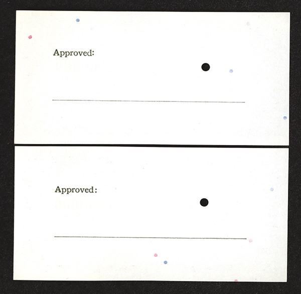 Philippines, 1949. Lot of 2 notes, Both are 5 Centavo color trials, P-Unlisted. Color varieties. Include black border and text on light green underprint and brown border and text on light green underprint. Red specimen overprint and POC's. 100 x 53 mm, dated 4-14-51. Reverses have line for approval signatures on back. Choice to Gem Uncirculated. Rare. SBNC.