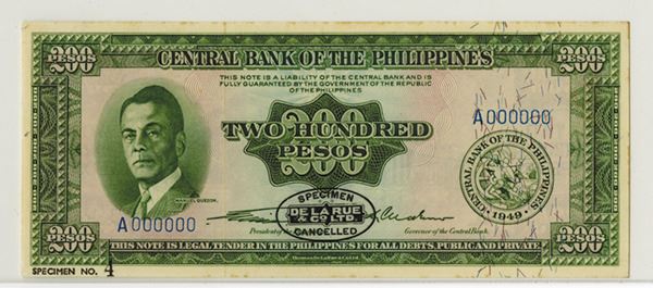 Philippines. ND (1961), 200 Pesos, P-140s, Specimen Banknote, Oval TDLR overprint on middle bottom, PCGS graded New 62, TDLR.