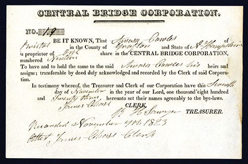 New Hampshire, 1823, I/U, #19, 1 share, Black print with underlined title but no border or vignette, VF condition.