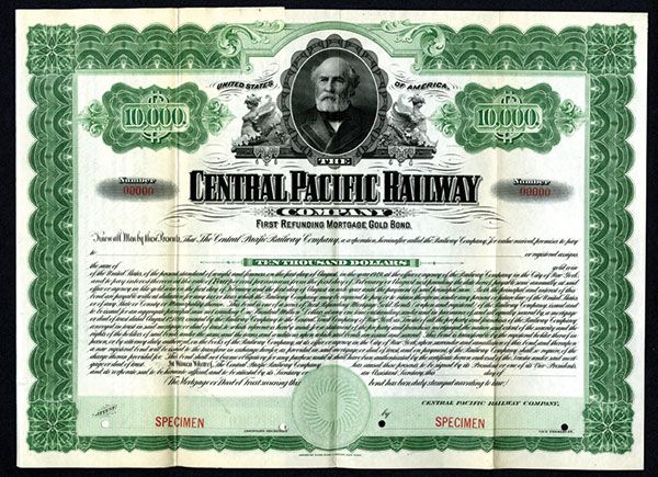 Utah, Green border, C.P. Huntington on top, XF, ABNC. Rare bond in any form.