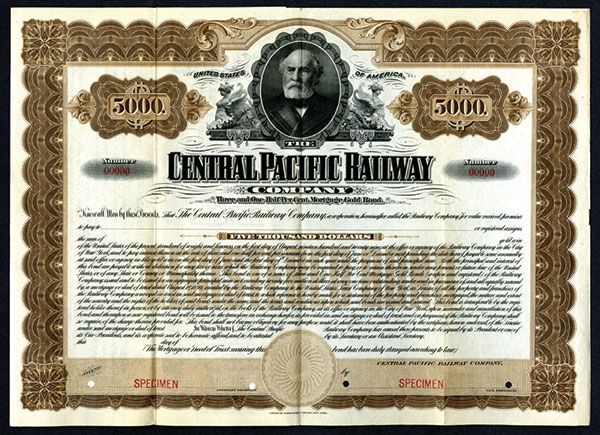 Utah, Brown border, C.P. Huntington on top, XF, ABNC. Rare bond in any form.