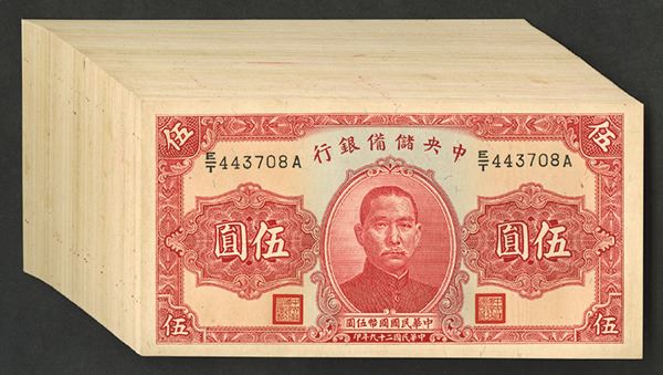 China, P-J10e, Issued banknotes, Serial numbers on face only, red signatures, SYS in middle, back red, Uncirculated to Gem Uncirculated. Very fresh appearing excellent centering.