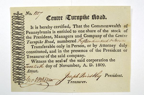 Pennsylvania. 1 Shrs Stock Certificate. I/U. Extremely Fine.