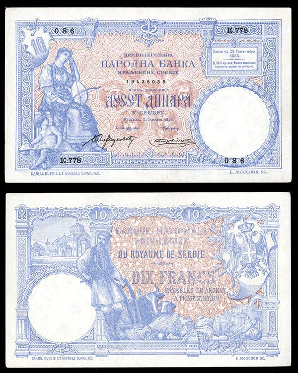Serbia, lot of 1 issued notes, includes 10 Dinara, P-10a, Choice AU and scarce this nice.