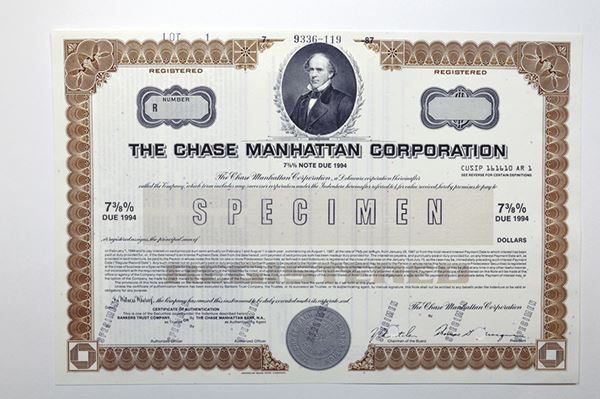 DE. Chase Manhattan Corp. 1987. $-Odd Registered Bond Specimen. ABNC. EF