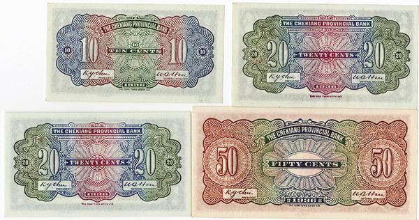 China, Lot of 4 notes, Includes 10 cents; 25 Cents (2); and 50 cents, P-S877; P-S878; and P-S879, all issued and Uncirculated to CU.