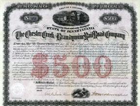 Pennsylvania, 1874, $500. Issued and uncancelled. First mortgage. Black border with train at station vignette. Cert.#153. Breuker & Kessler Lith, Philadelphia with coupons, XF, Scarce and attractive Pennsylvania Railroad bond.