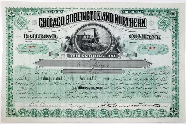 Illinois, 1902. 1 Share I/U Capital Stock Certificate, Black text with green border and undertint, Train in oval frame at top center. Fine condition, ABNC.