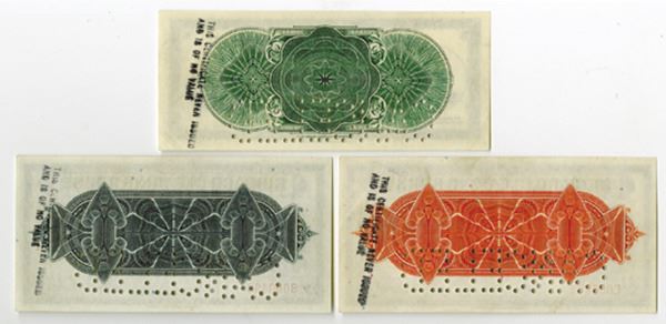 Chicago, IL. Lot of 3 notes, all with the same S/N 493, Includes $5, fort on left; $10 and $50 with Liberty at left, all with matching serial numbers ending in 493, all with POC's, the $10 and $50 are AU to Choice AU and the $5 is Uncirculated, attractive depression scrip trio. ABNC.