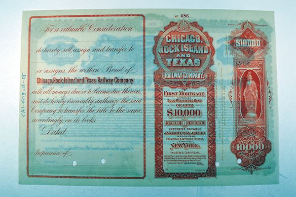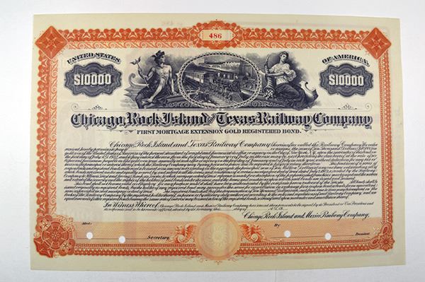 Texas. $10,000 Registered Gold Bond. Orange. Unissued, uncancelled. POCs at signature lines. Western BNC. Pencil catalog number notation on back. VF+.