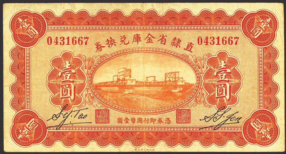 China. 1 Yuan, P-S1241a (S/M#C160-10), Issued banknote, Orange with bridge at center on face, back orange with large red seal, PMG graded Choice Very Fine 35 (Exceptional Paper Quality) with claims to XF, scarce note in any condition. BEPP. (From the Allen Berk Collection)