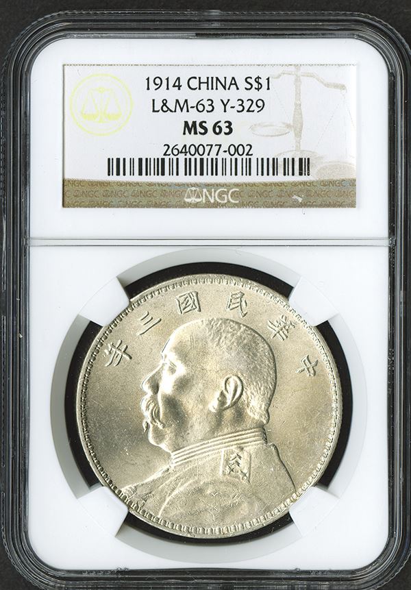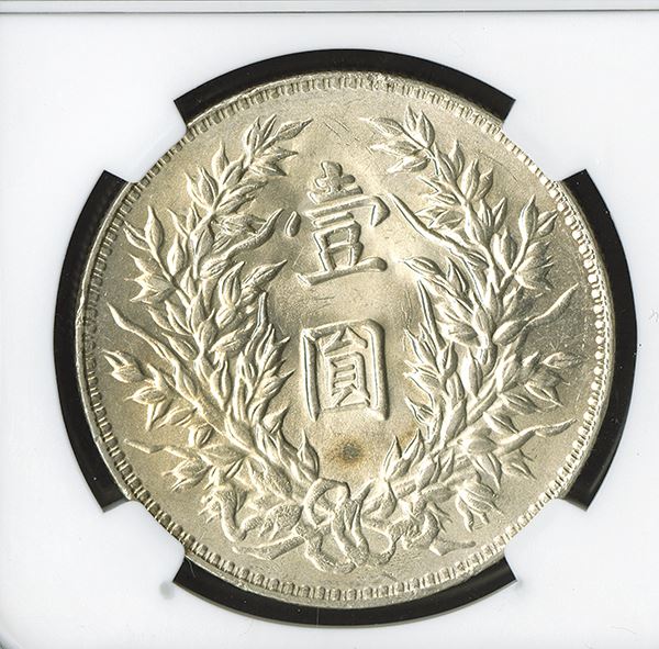 China. NGC graded MS 63. Flashy white surfaces with just a touch of toning on the reverse.
