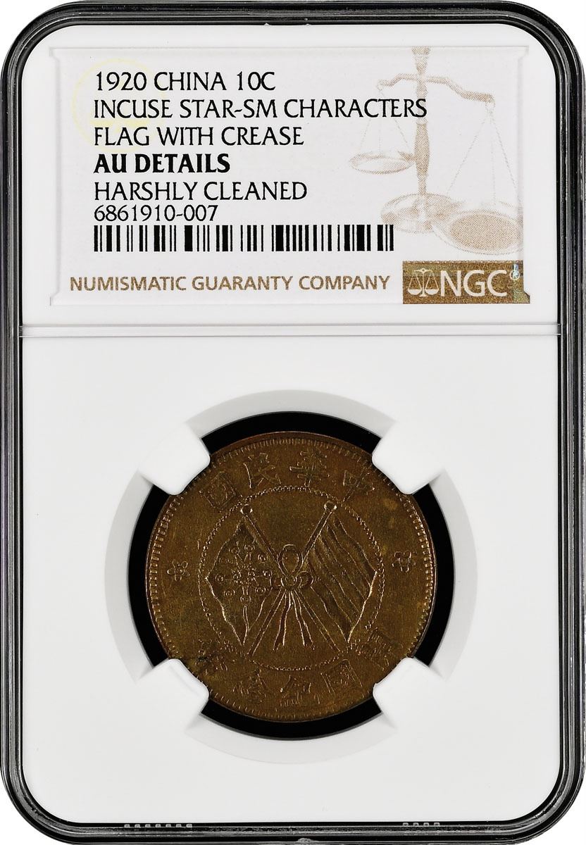 China: 1920, Incuse Star-Sm Characters Flag With Crease, NGC Graded AU DETAILS - HARSHLY CLEANED.