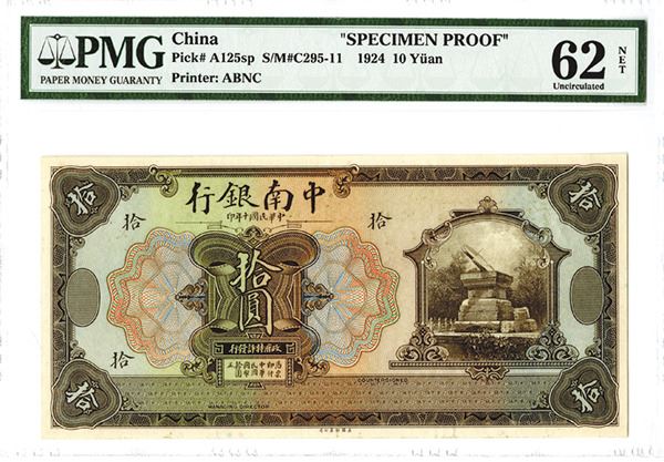 China, obverse color trial proof 10 Yuan, P-A125sp, S/M#C295-11, PMG graded Uncirculated 62 NET with comment "Previously Mounted."