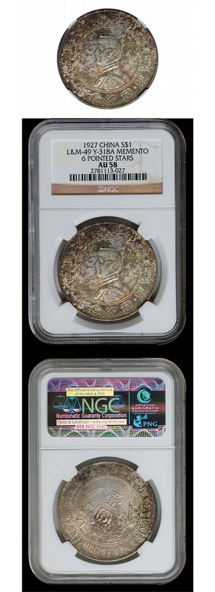 NGC graded AU 58, 6 Pointed Stars, Iridescent red and golden toning with Considerable luster, a lovely coin that has claims to Uncirculated condition.
