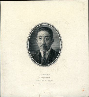 1915, 1939. 3 different LDP vignettes, 2 printed on india paper and one printed on india paper on card. 1, 2). Emperor Huangti. 2 different colors, black and blue. From Bank of China, 1915 "Huang Ti" Issue. P-37D to 37F. Notes catalog between $400 to $600 each. Probably never issued; 3). Liu Chung Hoi. Printed in black. From Bank of China, 1939 Issue. P-81A to 81C. Probably never issued, only known as remainders, proofs and specimens. Choice Unc. ABNC.