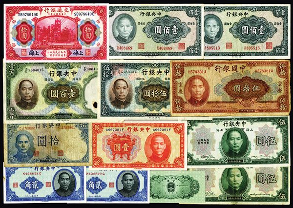 Includes Central Bank of China, Bank of China, Republic of China, Farmers Bank of China and others. Condition varies between VG to Unc. Unsearched. Sold "As Is", No returns accepted.