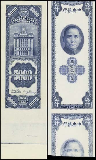 1948. P-360 Unlisted. 5000 CGU's. Uniface face and back proofs. Both with large margins. The face has 1/2 of additional note on bottom that is partially inked. Printed on thin white paper. Choice uncirculated. SBNC.