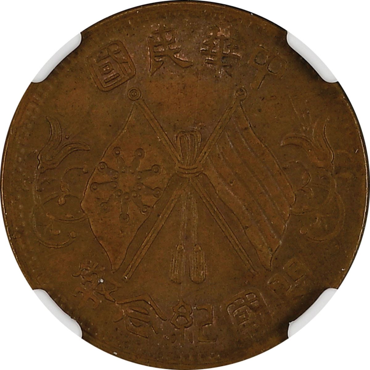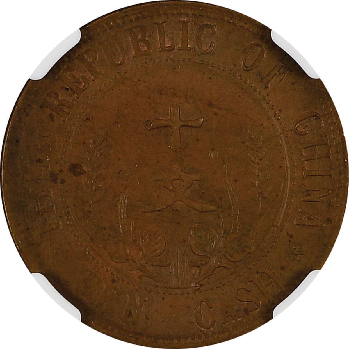 China: Empire, 10 Cash, 1912, 2 circles, 7 dot rosettes, common flower, NGC Graded MS 62 BN.