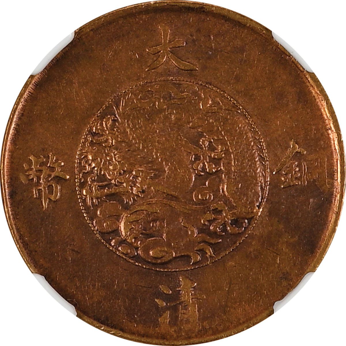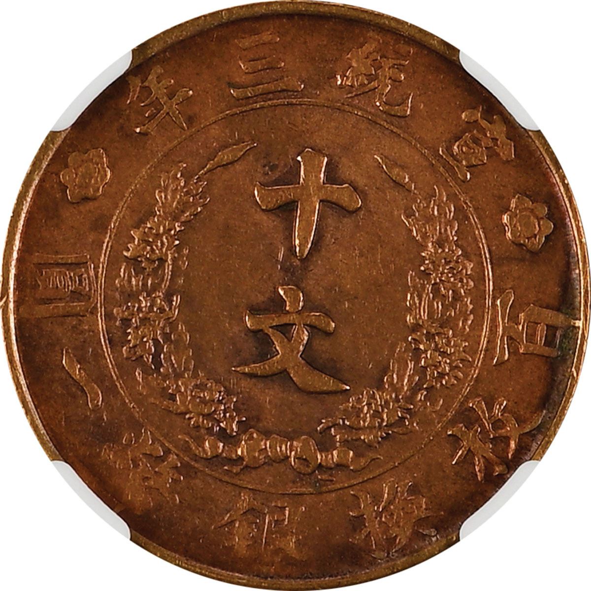 China: Empire, 10 Cash, YR3 (1914), NGC Graded AU Details (CLEANED).